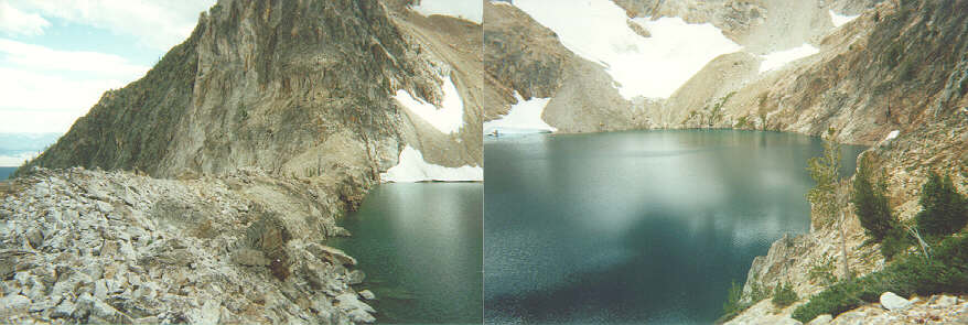 We backpacked in the first day about 4 miles to a lake at 9000' where we relaxed and fished. I caught two of the most beautiful fish I've ever caught in this lake. They were about 15" long and FAT...FAT...FAT!!! They were also very strong. They were cut-throat trout and they must have been spawning or something because their stomachs were an incredible reddish color.